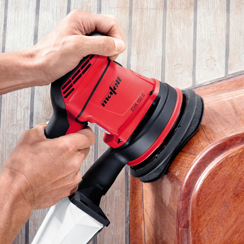 Vysoké otáčky, bez vibracií a robustná : EVA 150 E je excentrická brúska pro veľký záber, čisté pracovné prostredie a najlepšie výsledky. Vyvinuté v MAFELL: EVA 150 E má príjemný pokojný chod a vynikajúce schopnosti vedenia. Dosiahnete vynikajúci povrch u všetkých druhov dreva, doskového materiálu, ale tiež u lakov, farieb a sádrových tmelov. Hodnota emisií vibracií u EVA 150 E je pod 2,5 m/s a umožňuje nasadenie bez časového limitu. Brúska je vybavená 150 mm - brusným kotúčom, čo je Allrounder s dvoma brúsnymi zdvihmi 3 a 5 mm.
