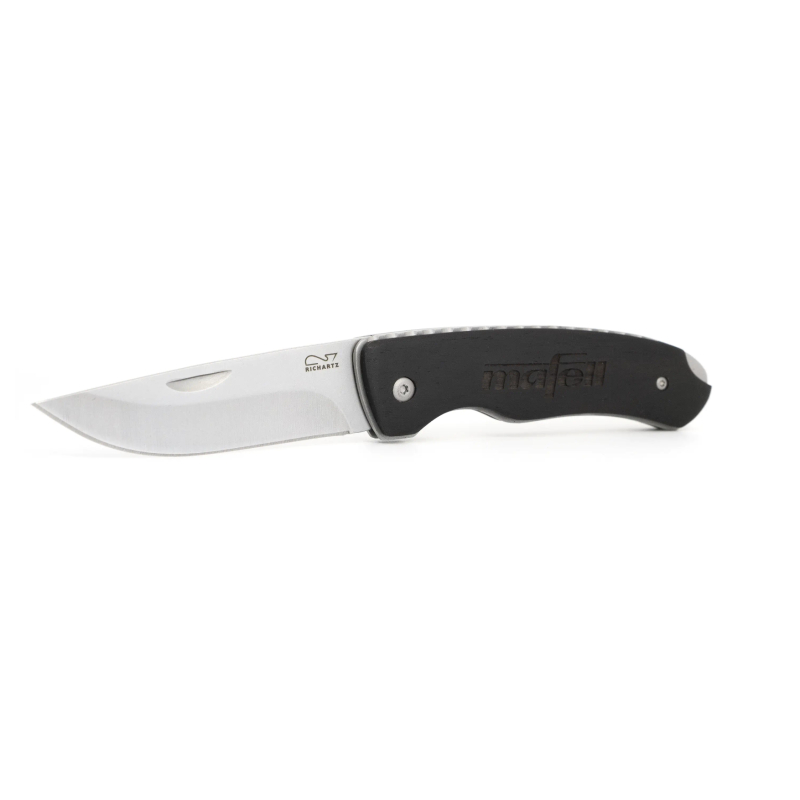 Prírodná krása – náš najobľúbenejší materiál v kombinácii s odolnou nehrdzavejúcou oceľou. Limitovaná edícia pracovného noža MAFELL so stabilnou čepeľou (8,5 cm) a ručne brúsenými rukoväťami z ebenového dreva od Richartz nielenže príjemne padne do ruky, ale zaručuje aj presnú funkciu. Bezpečnosť pri každodennom používaní samozrejme zabezpečuje poistka čepele Safte-Lock (Backlock) na konci rukoväte